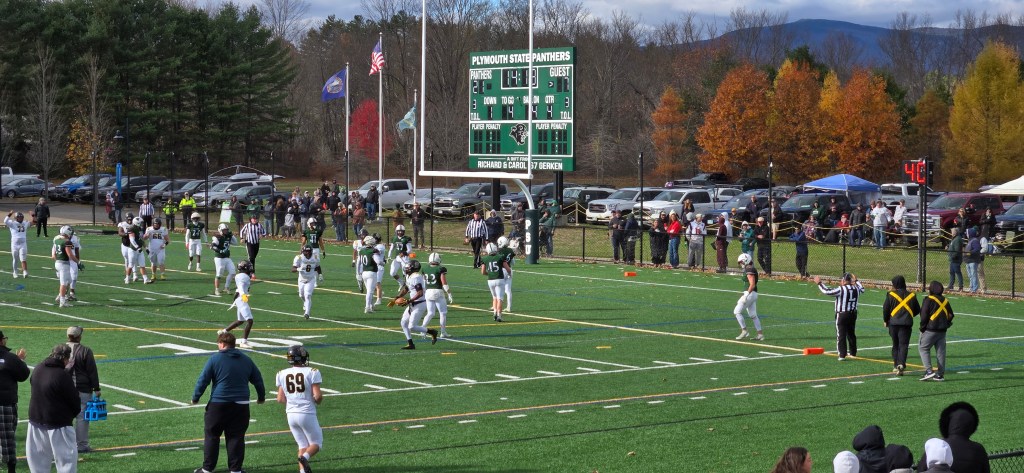 With two games left in the regular season, Plymouth State still has a shot at the MASCAC title. The Panthers built a big lead today, then held off a furious comeback by Framingham State to beat the Rams, 28-26. The game wasn’t decided until a 2-point attempt by the Rams fell incomplete in the end zone.